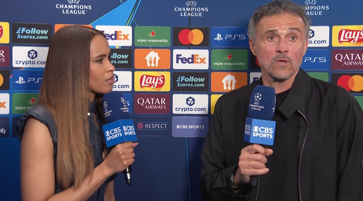 欧冠半决赛首回合,巴黎主场5-4战胜拜仁,巴黎主帅恩里克赛后接受了CBS体育的采访。