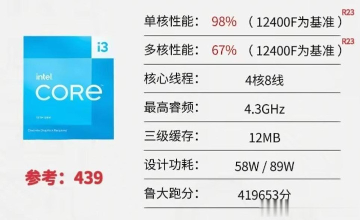 评价:价格涨价近50%!13400F对比12400F在多核性能上的提升较为显著,适合需要多任务处理和生产力工作的用户,而单核性能的差距相对较小,日常使用和游戏体验两者较为接近。