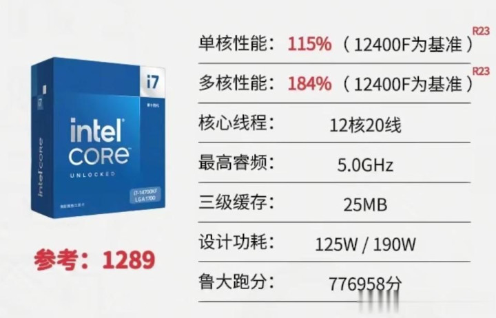 评价:综合性能比14600KF稍弱,但是12700KF的核心和缓存,多核性能上并不逊色太多,适合视频剪辑、3D渲染等生产力工作。而且不担心暴雷,但是功耗较大,对主板需求较高,想超频需要更高规格主板和散热。